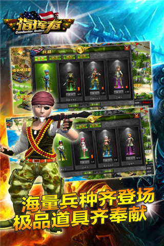 “运筹帷幄之中,决胜千里之外”,打造出真实版的唯美画面,采用顶级的云服务器,让你尽情体验万人互动的激情国战,强力的战争让人酣畅淋漓,全军跨服的PK战,尽情享受“呼伦贝尔草原之战、玉龙雪山冰川之战、镜泊湖之战、塔克拉玛干沙漠之战等,真正的万人互动,军事对垒,最终在星际战场上与敌军决一雌雄,你将带领你的千军万马、驰聘疆场、克敌制胜。真实还原现在三军大型战役,真正做到好玩不累,真正成为三军指挥官。