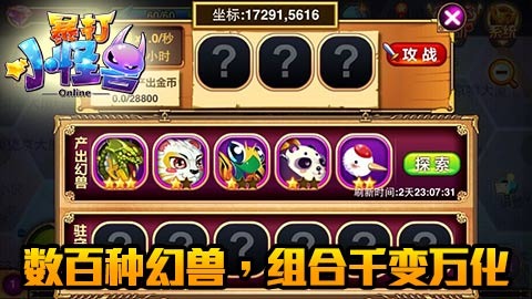 《暴打小怪兽》中幻兽数量多达450种,组合更是千变万化,玩家需要去寻找自己理想的幻兽,组合出最强阵容,才能成为一个合格的幻兽师。