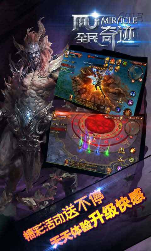 《全民奇迹》是一款以《奇迹MU》为蓝本的动作手游,游戏以Unity3D引擎打造,结合细微粒子特效,全息三维空间和真人动作捕捉技术,为玩家打造出一个旷世宏伟而流光绚丽的奇幻世界。华丽的技能特效,畅快的操作体验,把玩家带回到十年前那个奇迹的年代。