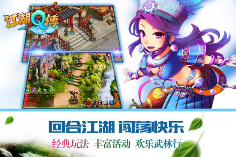 《江湖Q传》是一款以回合制战斗为主要战斗模式的多人在线角色扮演游戏。游戏主要讲述了玩家通过自身的修炼和众多伙伴的帮助,共同对抗邪恶势力,最终成就一段江湖传奇的故事。随着游戏的进行,玩家的江湖之行随之深入。玩家将会认识到江湖的纷乱,世间的冷暖,也会有机会揭开自己的身世之谜。