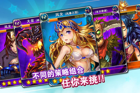 游戏参照《英雄联盟》的背景和英雄,玩家在符文大陆探险的过程中,招募这些知名的英雄战斗,采用九宫格布阵,最多同时配置1个主角+4个武将上场,战斗中通过玩家每回合控制主角释放不同技能及QTE,来赢得最后的胜利。