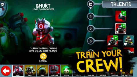 在游戏中玩家将驾驶着自己的船只在一片海域上与敌人展开一场场惊心动魄的对战,游戏采用了Rovio所擅长的卡通风格的画面设计,在游戏里玩家可以对自己的船只进行升级使得它的速度更快,或者生命值更高,此外游戏中的武器系统也是非常丰富的,不同的武器攻击方式与攻击范围都是不一样的,一件趁手的武器可以让玩家更容易的获得对战的胜利