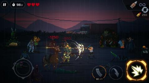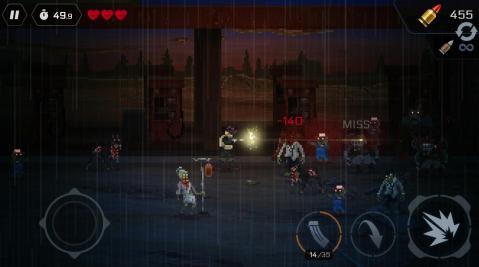 你可以在这款游戏中发现熟悉的2D射击元素,不过难度非常高,僵尸会从四面八方涌来,而你一轮只能打个位数的子弹,一边走位一边还得灵活走位,被咬上一两口基本上就GG了。