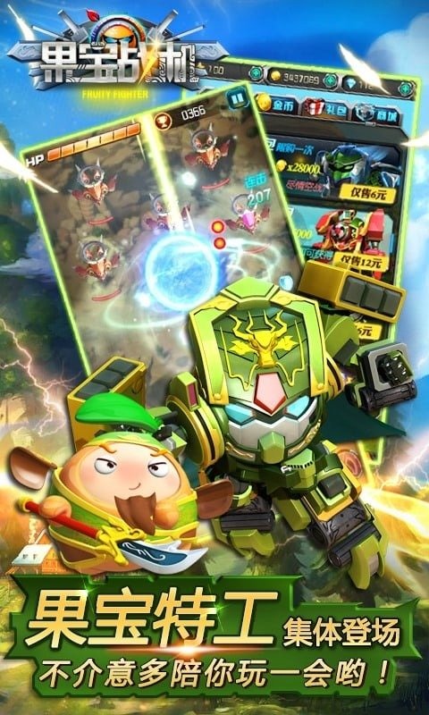 《果宝战机》是一款机甲射击类手游,游戏以经典果宝形象为游戏背景,全新射击玩法!超华丽射击特效,超炫战斗场面,正统创意机战一触即发!年度3D巨制,《果宝战机》归位,带你体验最经典的机甲飞行射击游戏!