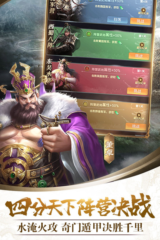 《战吕布》是一款极具策略性的三国卡牌回合制游戏。游戏中有上百个史诗级武将收集,多维度自由培养,阵容搭配千变万化,合体技酷炫炸裂,十八般神兵齐出制胜全场,而且加入了千人竞技、百团大战等大型玩法,新奇与经典完美融合,延续魏蜀吴群的传奇对决!开局就送马超,次日上线送黄忠,助主公攻称霸天下,一统三国!