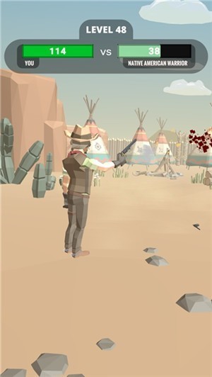 321开火是一款卡通风格的牛仔射击类的游戏,保留西部牛仔pk的精神,大家只要越好时间地点,当决斗开始后,玩家拿起武器迅速的瞄准敌人,快速击杀即可,操作简单,画质精美,融入大量的物理原理,把握住时机动作,明确攻击的对象,不浪费任务任何机会,通过各种战斗将所有的敌人击杀,成为最厉害的牛仔!