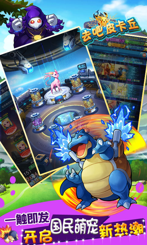 “为了防止世界被破坏,为了守护世界的和平,贯彻爱与真实的邪恶,可爱又迷人的反派角色!”没错!这就是来自《去吧皮卡丘》游戏中的对白,有木有一种很熟悉的穿越的赶脚!是的!《去吧皮卡丘》的剧情设计真实还原了神奇宝贝口袋妖怪的经典画面, 绝对是一款充满回忆的,集宠物养成,策略等多种类型于一体的全新卡牌对战游戏。艾玛!瞬间穿越到10年前穿吊带裤的时候!是不是小小的激动了下!