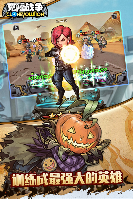 风靡海外的美式硬核卡牌游戏来啦!《克隆战争》是一款末世废土风格浓厚的卡牌游戏,搞怪的画风,酷炫的技能科技,带你进入不一样的克隆世界!在这里,你能够克隆出各种各样的历史英雄,明星大腕等等,凯撒大帝VS伊丽莎白女王,武皇帝VS德古拉,李小龙VS埃及艳后。各路英雄大乱斗!只有想不到,没有做不到,快来召唤属于你自己的克隆英雄吧!消灭邪恶的克隆生化军团!