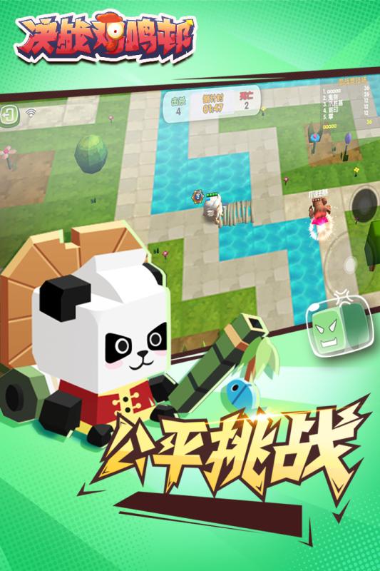 1.《决战鸡鸣邨》是一款简单有趣的多人对战射击类游戏,5V5公平组队战,超可爱的方块小人,萌萌哒的块状地图让玩家可以爱不释手!一站到底竞技场、血战竞技场、自由竞技场等多类玩法让玩家享受来自射击弹幕的爽快感~