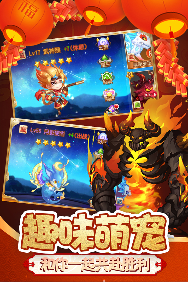 游戏有丰富的外观,在宠物系统上增加了宠物羁绊、武器系统、坐骑特效、皮肤特效。既增加了操作性,又丰富了游戏的策略性,让玩家以最轻松的操作,体验最爽快的策略玩法