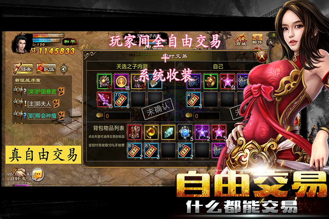 【自由交易】玩家间全自由交易+系统收装,没有不能卖的,也没有不能买的