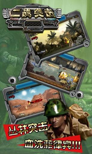 史上最激烈火爆的横版大作飞行射击游戏炫酷登场!坦克战、潜艇战、陆地堡垒战、飞机空战,让您热血沸腾;血腥战场、美女团长、美金奖励,绝对让您心潮澎湃! 另外,您还可以选择不同的战役进行突击,每场战役也可以选择不同的模式,简单模式或者地狱模式,从而体验到不一样的战场环境,带您重回真实的二战1945年代。本游戏的亮点就是综合了二战风云、雷电、全民突击、CS反恐精英等多款游戏的玩法特点,从此绝对让您爱不释手,让您看到自己最MAN的一面!是男人,就赶紧来参战吧!