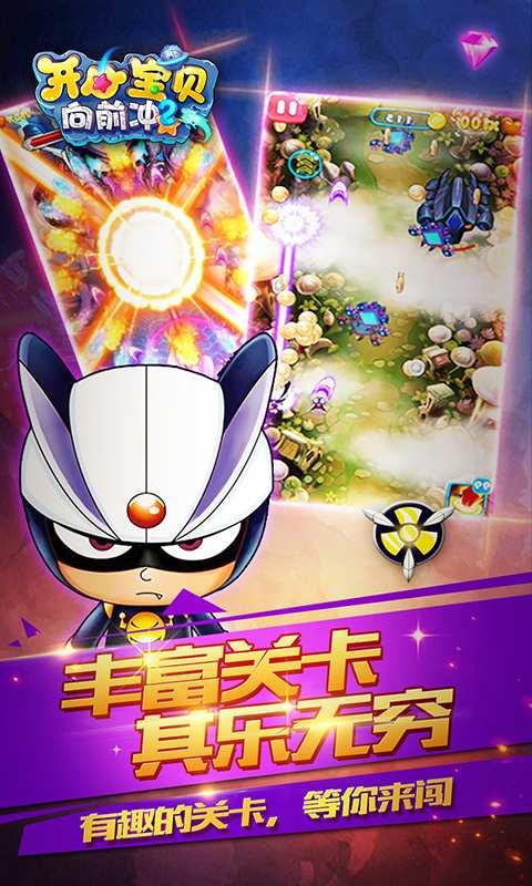 《开心宝贝向前冲2》是一款竖版飞行射击类游戏。由知名动画片《开心超人》官方授权研发,团队坚持精品游戏理念,潜心研发1年有余,力求为玩家献上一款经典大作。 画风上秉承了动漫中卡通幽默的风格,运用了大量骨骼动画丰富了以往飞机游戏细节表现力上的不足。关卡的精良设计是游戏的一大特色,每个关卡、每波敌人、每组弹幕、都经过精心搭配与打磨,使游戏具备了极强的可玩性与耐玩度。加之华丽的弹幕、耐玩的系统设定、近乎3d的纵深场景等等内容共同营造出良好的游戏体验。