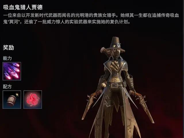 一位来自以开发新时代武器而闻名的光明港贵族女猎手。她倾其一生都在追捕传奇吸血鬼“冥河”,还偷了一批威力惊人的实验武器来实施她的复仇计划。