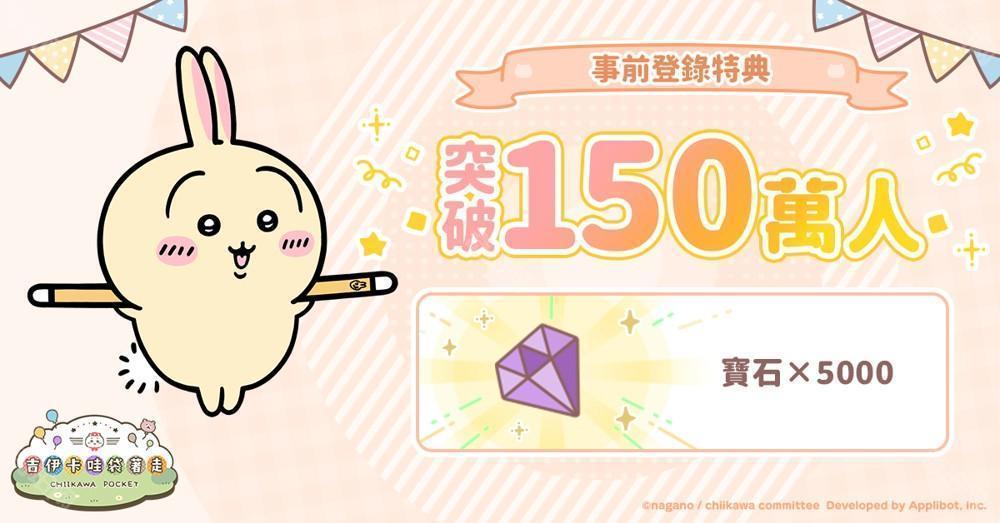 此外,官方表示,由于事前登录人数超过 150 万人,《吉伊卡哇袋着走》上线时将赠送所有玩家游戏内道具「宝石 ×5000」。