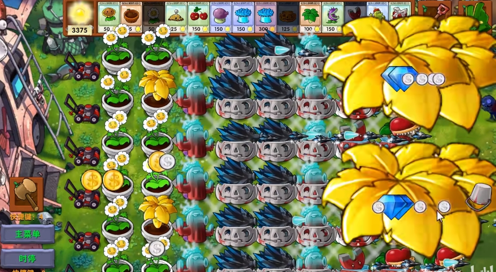 1、进入游戏后布置植物,然后就会发现新模式里面植物是对称出现的。