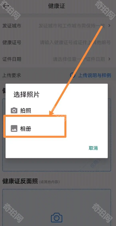 这里可选择从相册或拍照上传