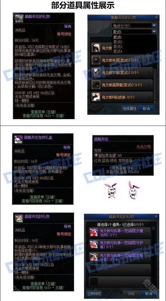 甜酷邦尼宠物(无属性)与41个宠物饲料、终末之启示礼盒(401个)