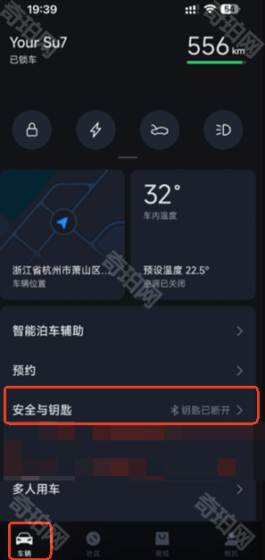 1、首先打开小米汽车app,在车辆页面找到安全与钥匙这个功能
