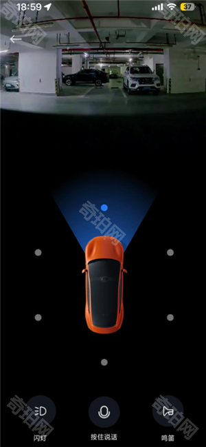 3、等待加载完毕后就会显示摄像头画面,可以通过点击下面的图标来切换摄像头视角使用或鸣笛、亮灯和说话等功能