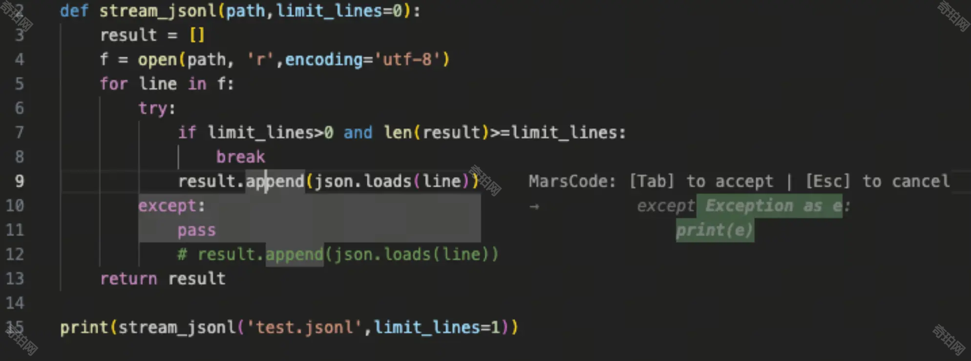 我们可以按下Tab键来跳转到需要跳转的代码行,二次按下Tab键来采纳推荐的代码