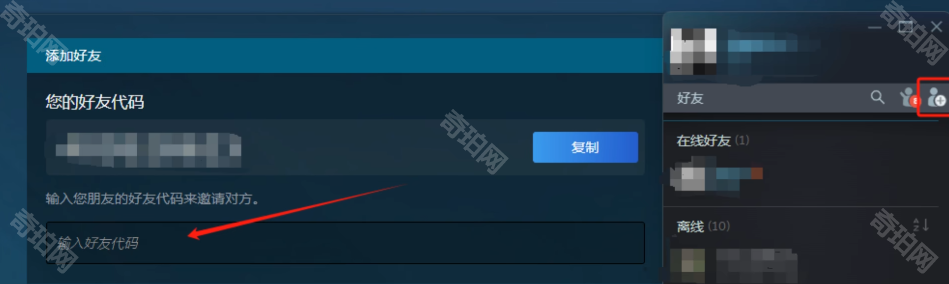 2、然后在在Steam平台中添加要一起游玩的好友