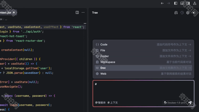 Trae上下文理解能力增强,不仅可以处理代码、终端信息和IDE内部信息外还能处理部分外部信息,让其完美融入工作流中