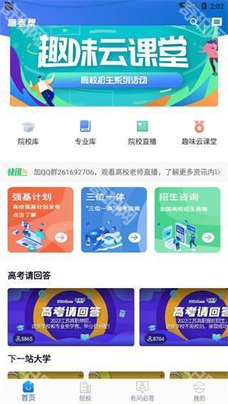 高考帮是一款高考学子必备的考试学习软件,在高考前夕我们可以在这款软件上刷大量的历年考试题,在高考分后还提供志愿填报功能,还有贴心的老师全方位360°为我们讲解每个学校的最佳专业和选择建议,除此之外还能在社区中和其他学生一起交流并学习经验。