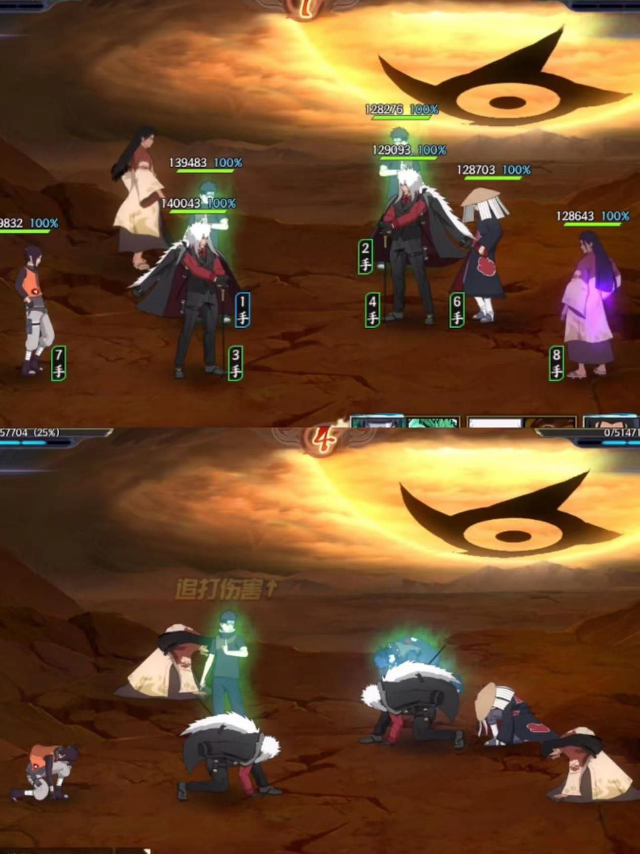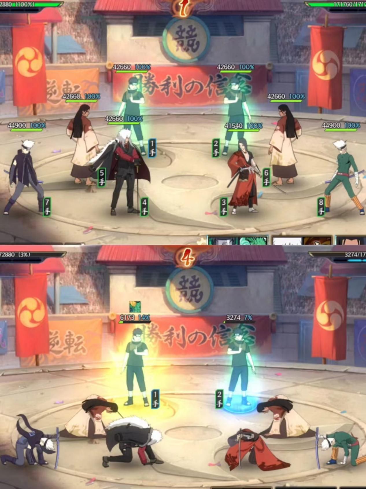 2、我方玖辛奈激活被动伤害,对方自来也和火主战败;
