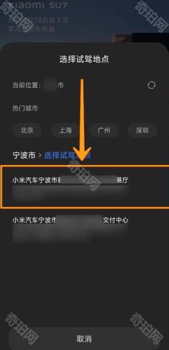 注:APP会自动检测当前位置附近的小米汽车专卖店