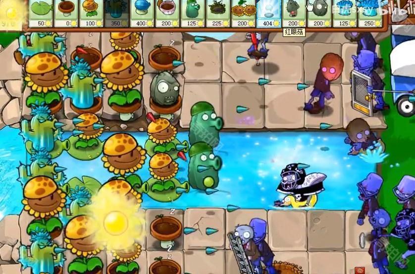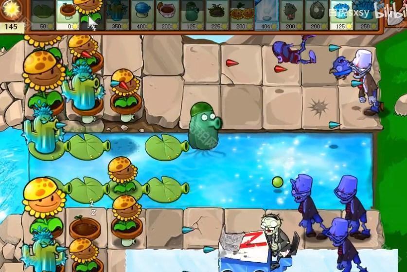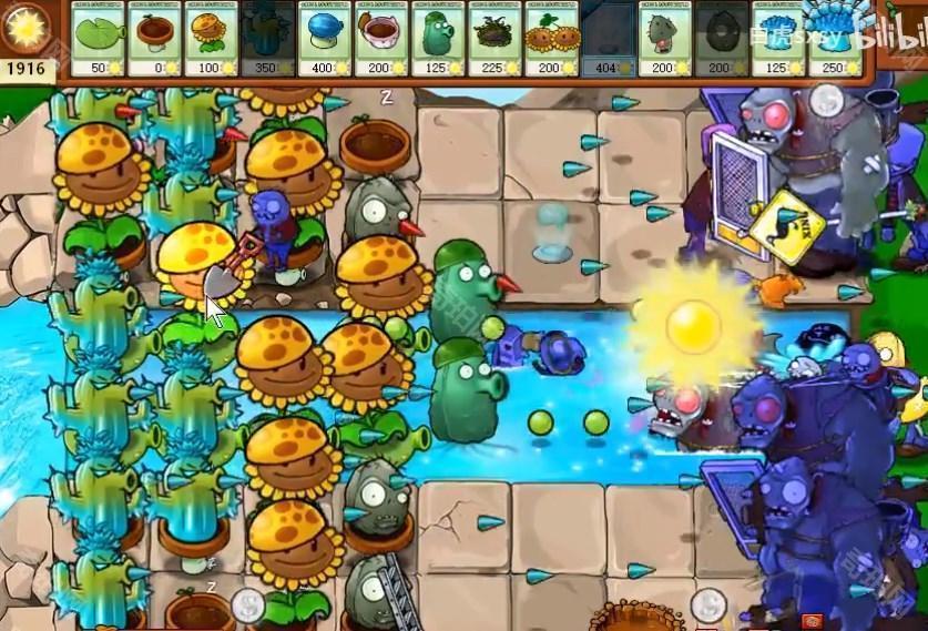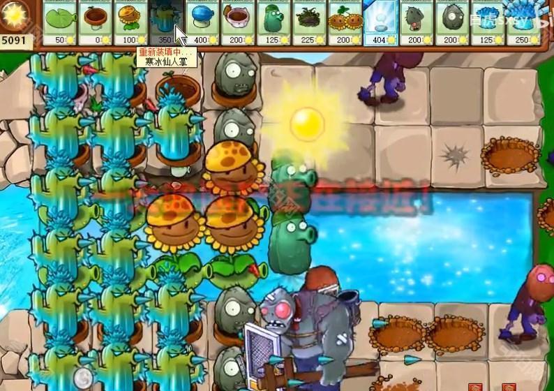 4、后面能量差不多够用了之后就可以将向日葵铲掉一些,换上寒冰仙人掌等攻击植物。