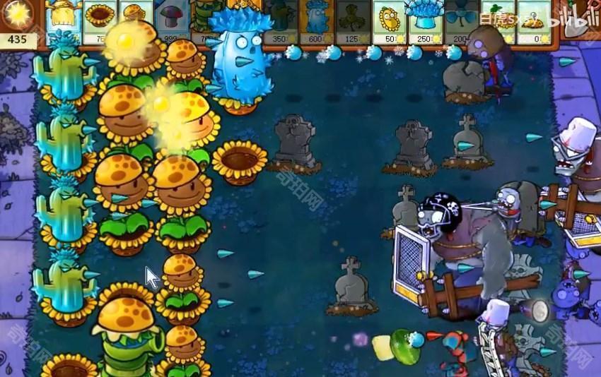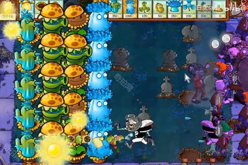 2、在后排放寒冰仙人掌,这个攻击距离远,可以放在最后一排。