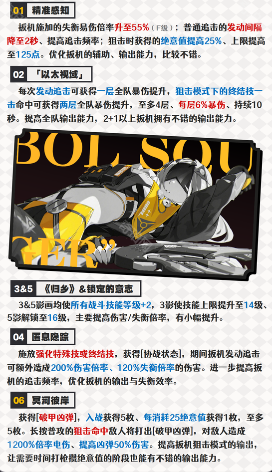 1影从辅助能力、追击次数和频率等方面优化了扳机(推荐先抽至0+1再考虑1影)
