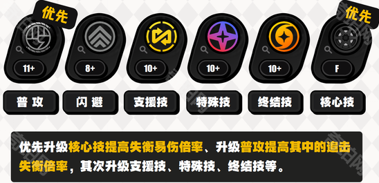 核心技=普攻>支援技=特殊技=终结技>闪避支援