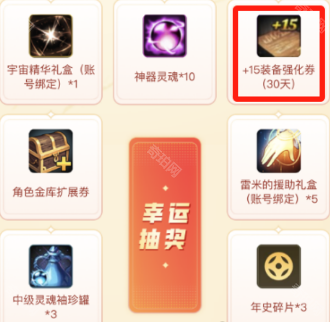 编年体的界面改版了,大奖还是4张幸运符,只不过抽奖里面新增了+15强化券,不知道需要什么样的运气才能抽到