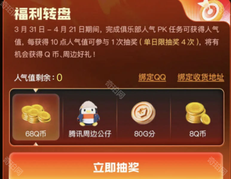 完成一些基础任务,比如说每日登录游戏、消耗100疲劳之类就能取人气值,有了人气值就可以抽奖,有小伙伴已经抽到了8Q币。心悦是官方的,经常都有活动。