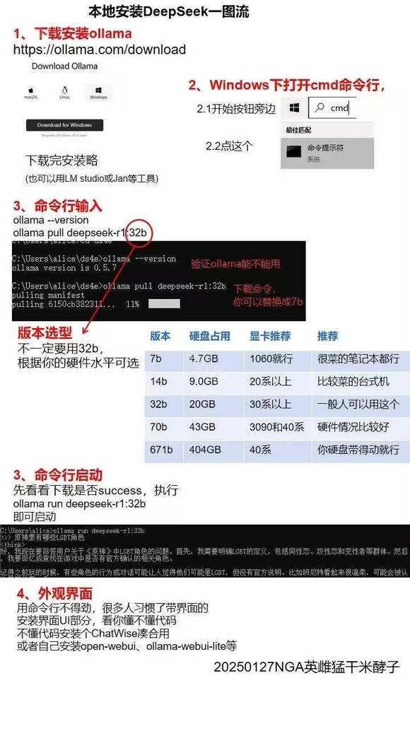 ollama pull deepseek-r1:32b(最后不一定用32b,根据自己的硬件水平选择7b/14b/32b/70b/671b)