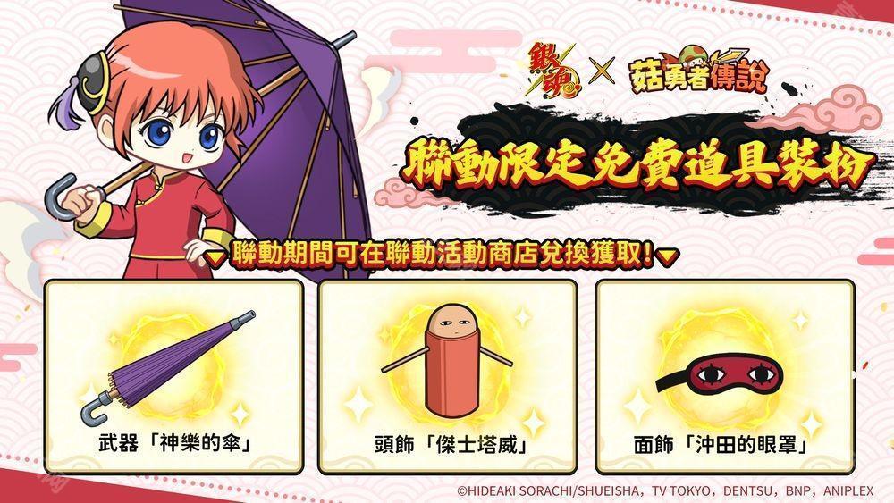 为纪念《菇勇者传说》×TV 动画《银魂》的联动活动,《菇勇者传说》官方将于 FB 专页展开纪念活动!只要追踪《菇勇者传说》FB 粉丝专页并转发联动贴文就能参与,官方将抽出 10 位幸运玩家送出 MyCard 专属 500 点!欢迎踊跃参加!
