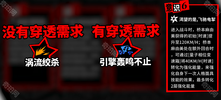 桥本麻由美处在额外回合时,可通过[量子相位变速箱]将40KM/H[时速]转化为强化能量,来强化自身下一次人格面具技能的效果,最多转化2层强化能量