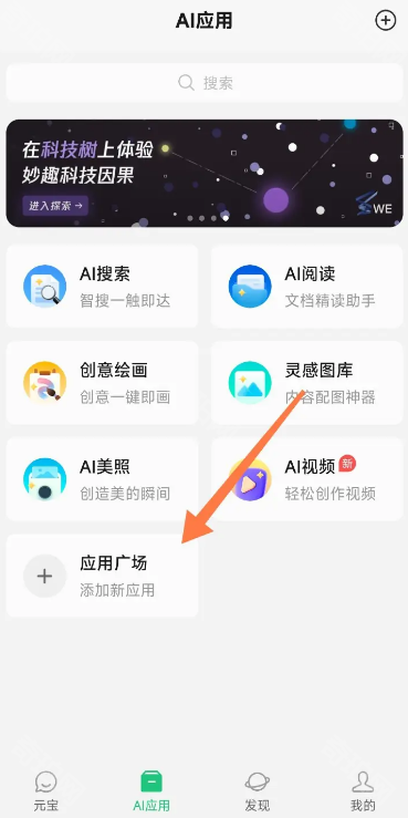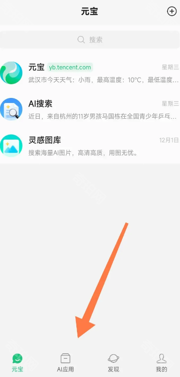 1、首先我们打开腾讯元宝APP,点击底部的AI应用