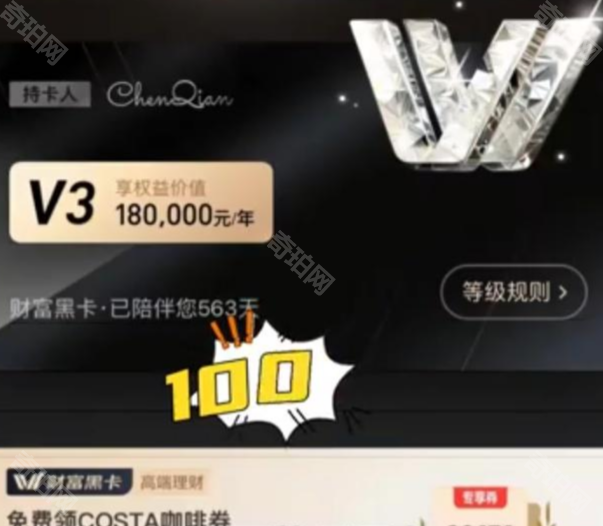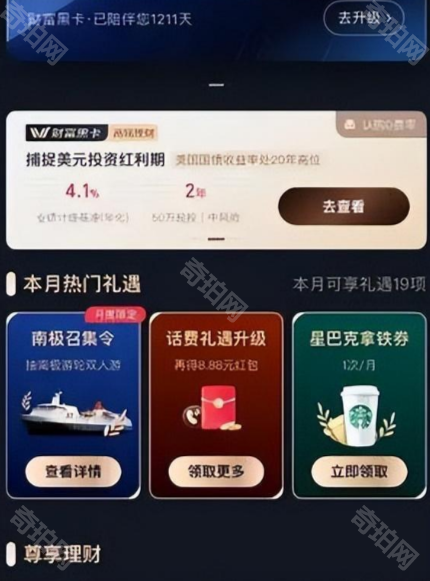 如:黑卡用户每个月有免费的星巴克和免费APP会员可以领