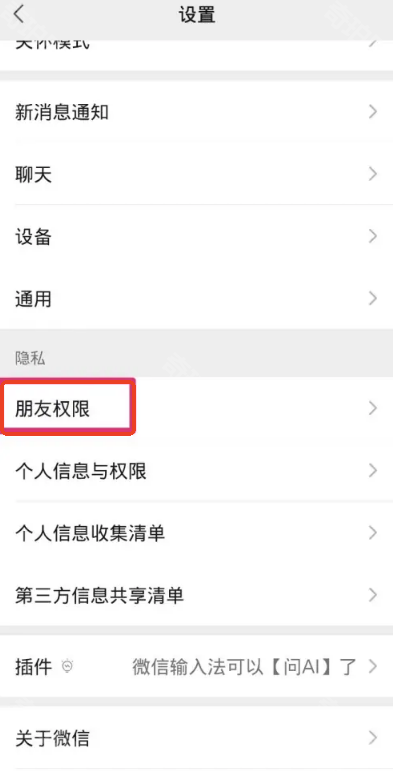 2、在隐私分类中我们可以找到朋友权限
