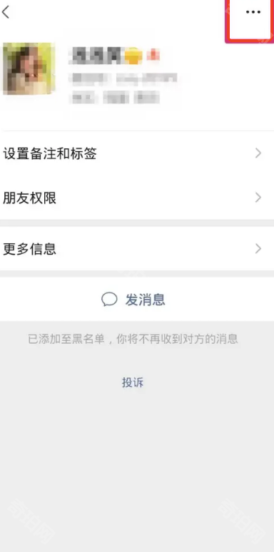 4、在黑名单中点击用户头像,这时会来到用户的个人资料页面,点击右上角的三个点