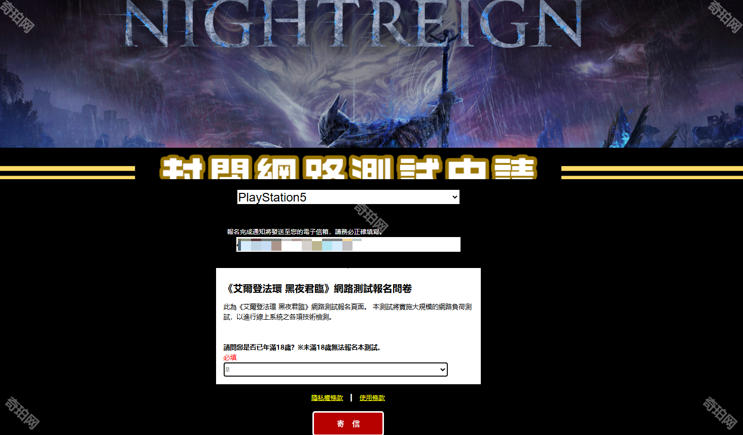 2、填写要可以参与测试的设备、电子邮箱和年龄确认后点击寄信
