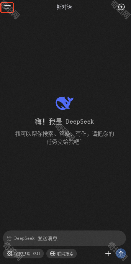 1、打开DeepSeek软件,按下左上方的2条横杠,打开菜单