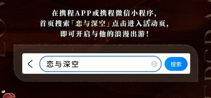 活动期间,前往携程APP或携程微信小程序,搜索「恋与深空」进入活动页完成活动,即可开启与他的浪漫出游领取奖励。