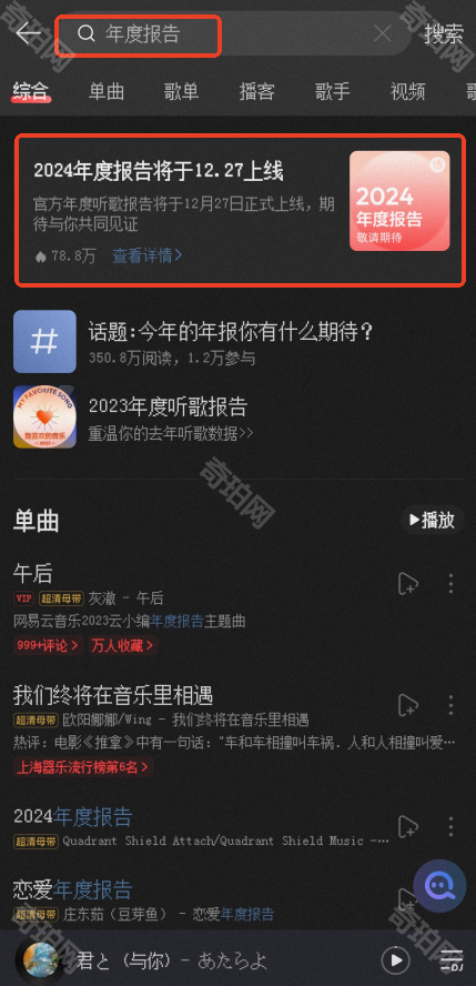 网易云音乐2024年度报告什么时候有?2024年即将结束,各大平台的APP都开始逐步上线年度报告,许多小伙伴想知道网易云音乐2024年的年度听歌报告什么时候出,那么接下来就和小编一起看看《网易云音乐》2024年度报告上线时间介绍吧。