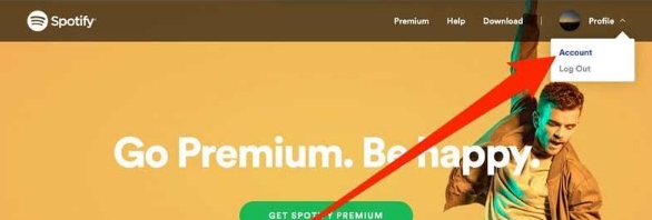 1、首先,打开官网【https://open.spotify.com/】,点击右上角账户。