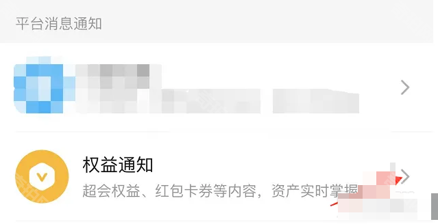 4、在消息通知设置页面中点击权益通知