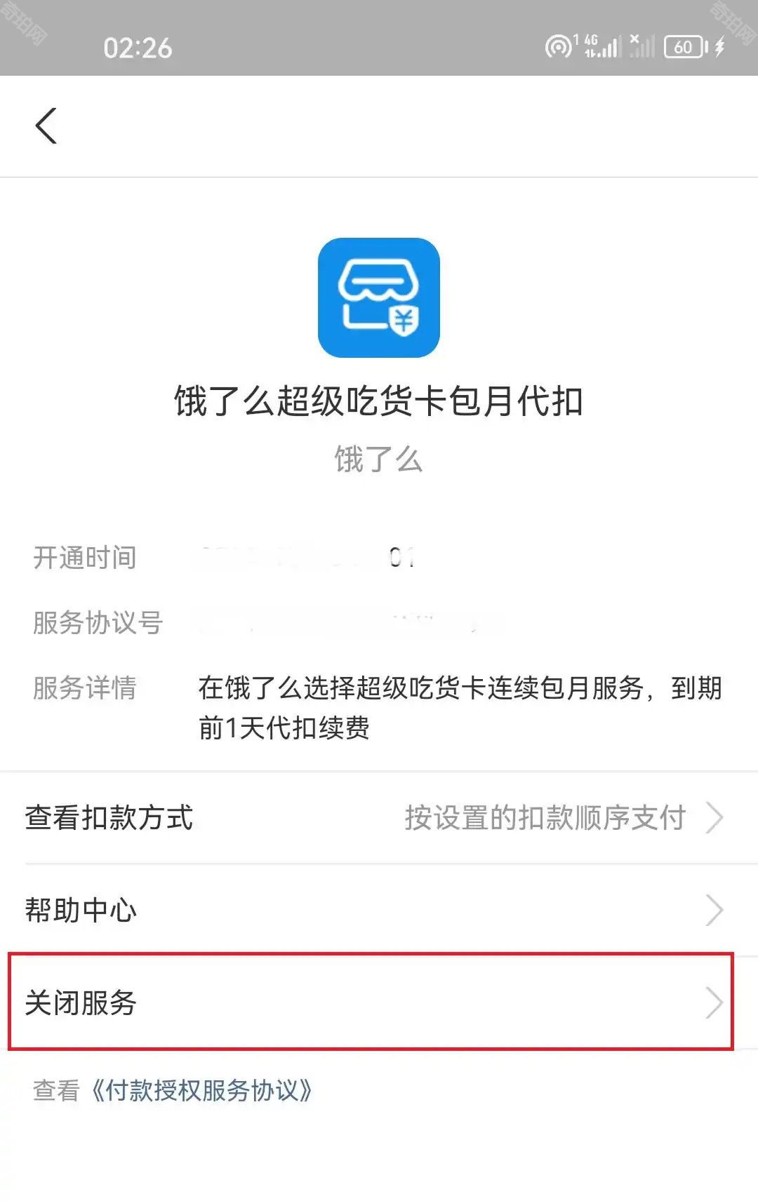 5、在详情页下方有关闭服务的选项,点击并确认即可成功关闭续费